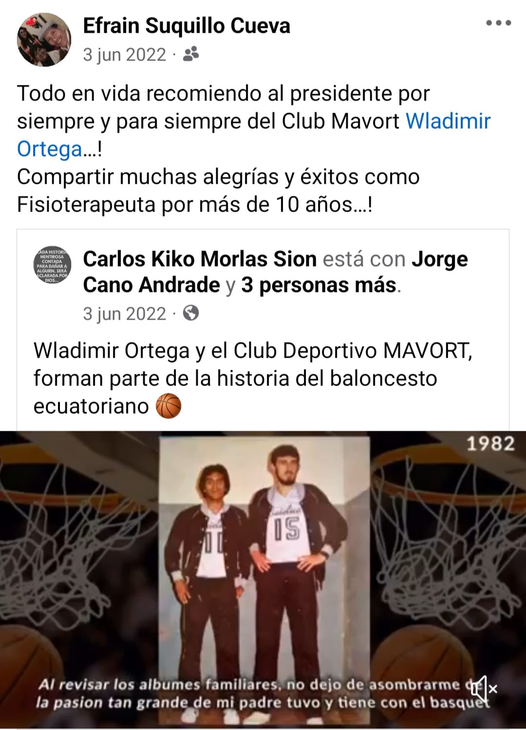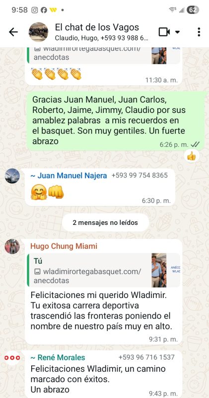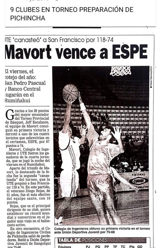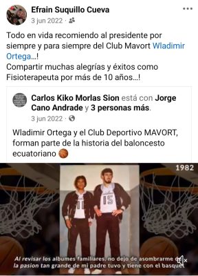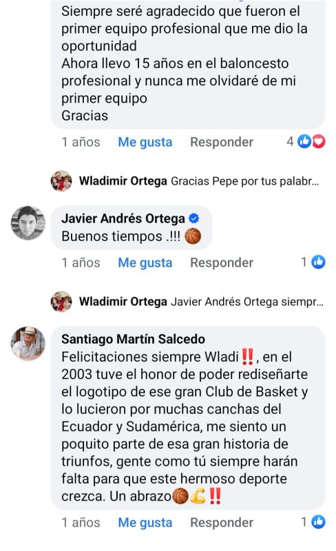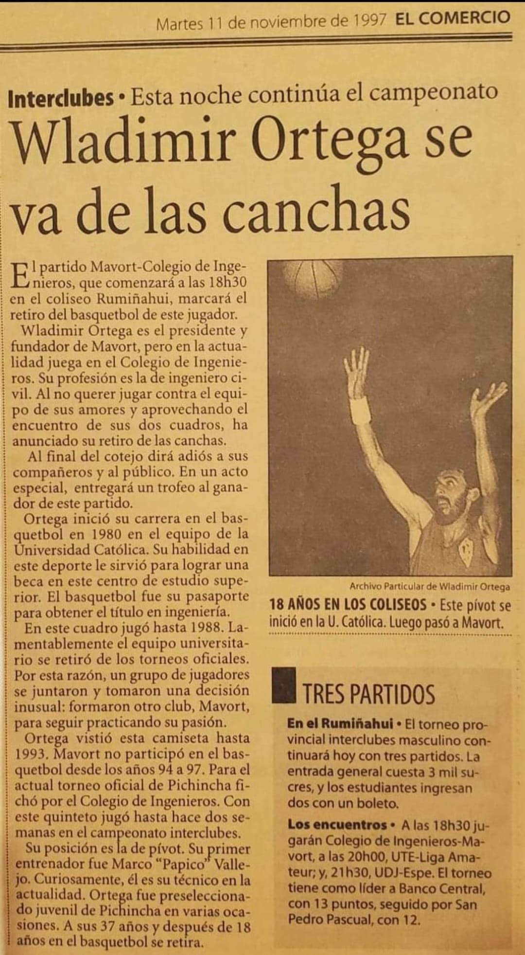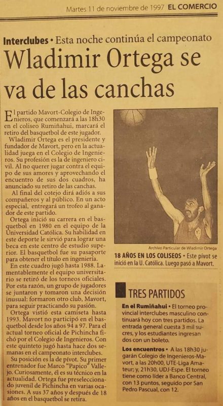 - Wladimir Ortega se retiro del basquet profesional el 11 de noviembre de 1997, luego de jugar 19 años en diferentes torneos y clubes ecuatorianos. Coincidía que ese dia jugaban los clubes Mavort contra Colegio de Ingenieros Civiles, y Ortega dono un trofeo al ganador de ese encuentro.