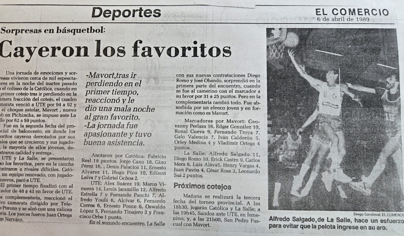 - En el año 1989 no salió a participar en los campeonatos locales el club Universidad Catolica, lo que hizo que Wladimir Ortega fundara el Club Deportivo Mavort para jugar los torneos locales, junto con los jugadores pertenecientes a Universidad Catolica.