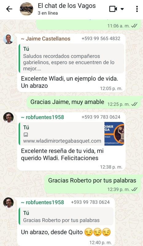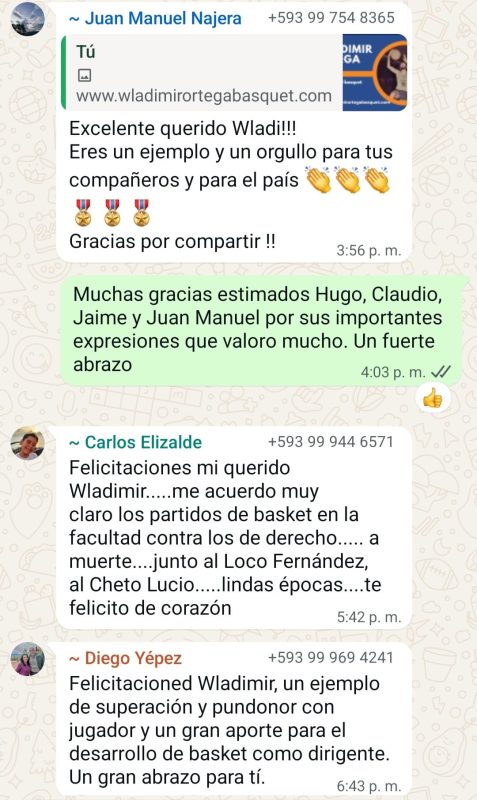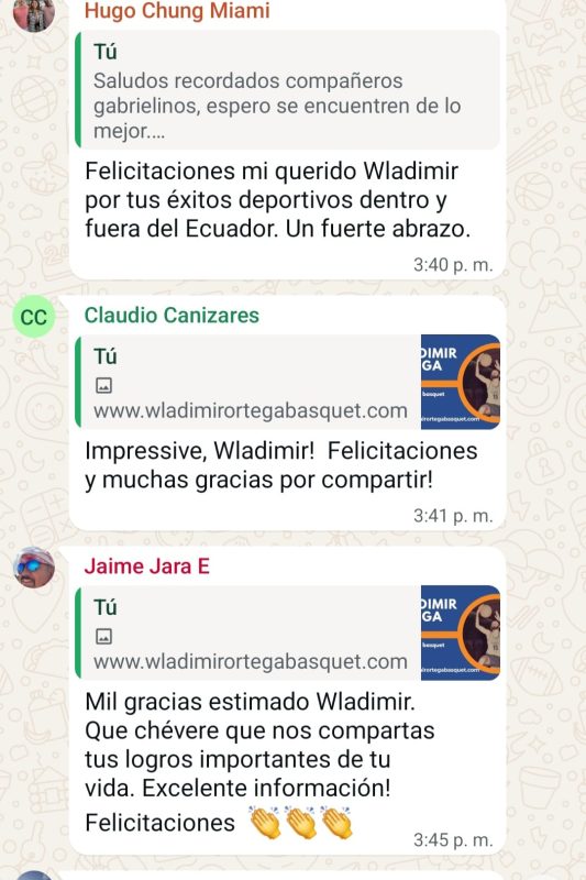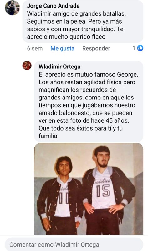 - Desde su juventud, Wladimir Ortega sintió gran atracción y entrega por el básquetbol. Desde sus días de colegial en el colegio San Gabriel de Quito practico este deporte.