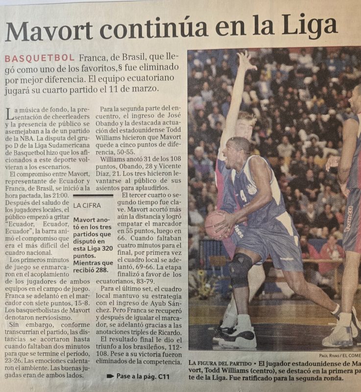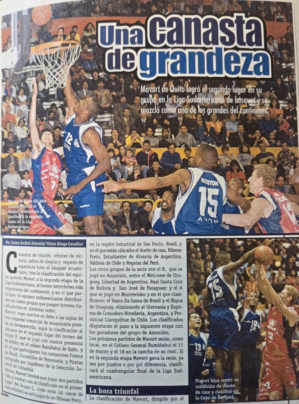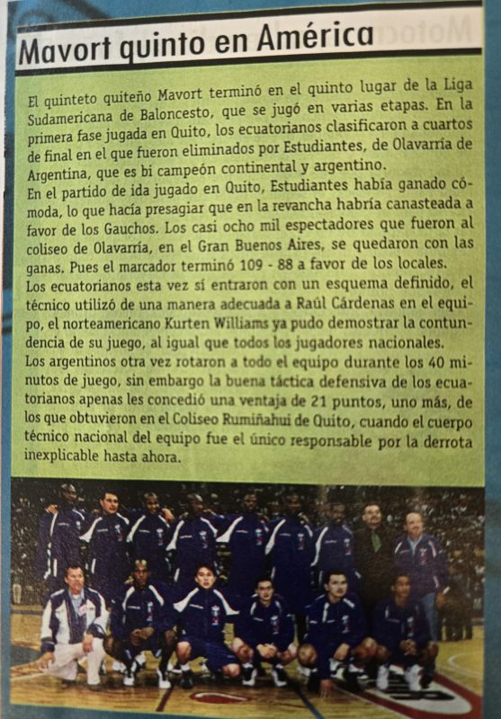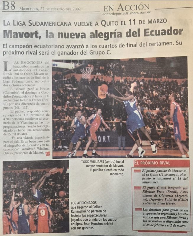 En relación a este logro de Mavort en 2002, viene a mi mente el hecho de reivindicar la imagen del básquet ecuatoriano, tan venida a menos, pues en el año 2000, el equipo ecuatoriano ESPE perdió en Rio de Janeiro por una paliza histórica 140-39 ante el club Flamengo y los comentaristas argentinos de DirecTV se burlaron del básquet ecuatoriano diciendo que ESPE era un “equipito de jugadores amateurs” expresión ofensiva al básquet ecuatoriano. Dos años después, luego que Mavort clasificó eliminando al campeón brasileño Franca y que la CONSUBASQUET lo declarara el equipo sensación de Sudamérica, coincidentemente vi a los periodistas argentinos de DirecTV en el coliseo, me acerque a ellos y tuve la oportunidad de decirles que no vuelvan a hablar mal del básquet ecuatoriano, pues el Club Mavort demostró que el deporte en Ecuador también puede ser de alto nivel. Los periodistas reconocieron esta nueva imagen del básquet ecuatoriano, nos desearon buena suerte y que continuemos con nuestra labor. Satisfacción por haber aclarado malas expresiones hacia nuestro básquetbol.